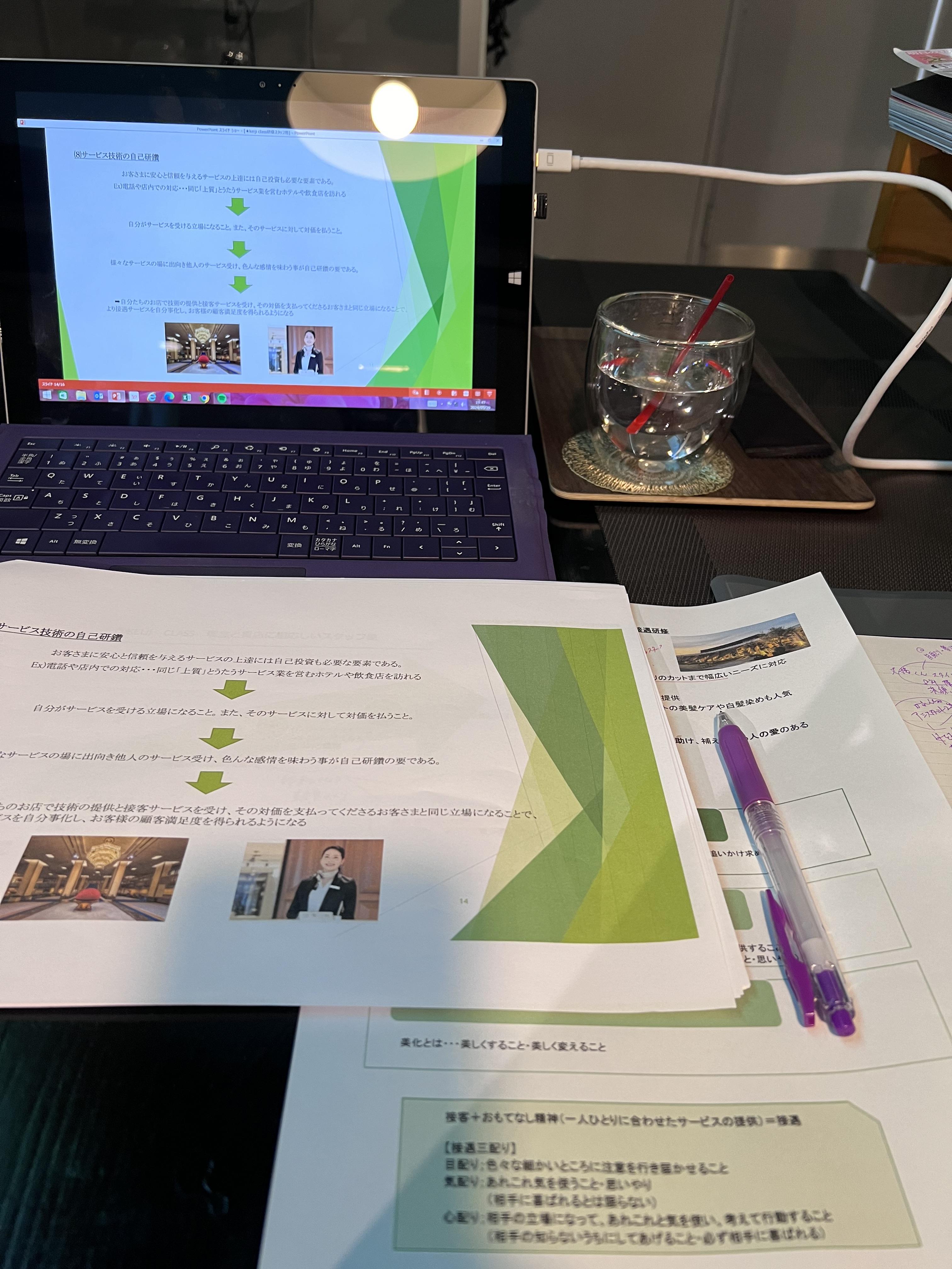 レセプショニストとして本物の接客とは何か、お客様の心を掴む「心が伴った接客=接遇マナー」の重要性、そしてコミュニケーションの大切さを学ぶ。